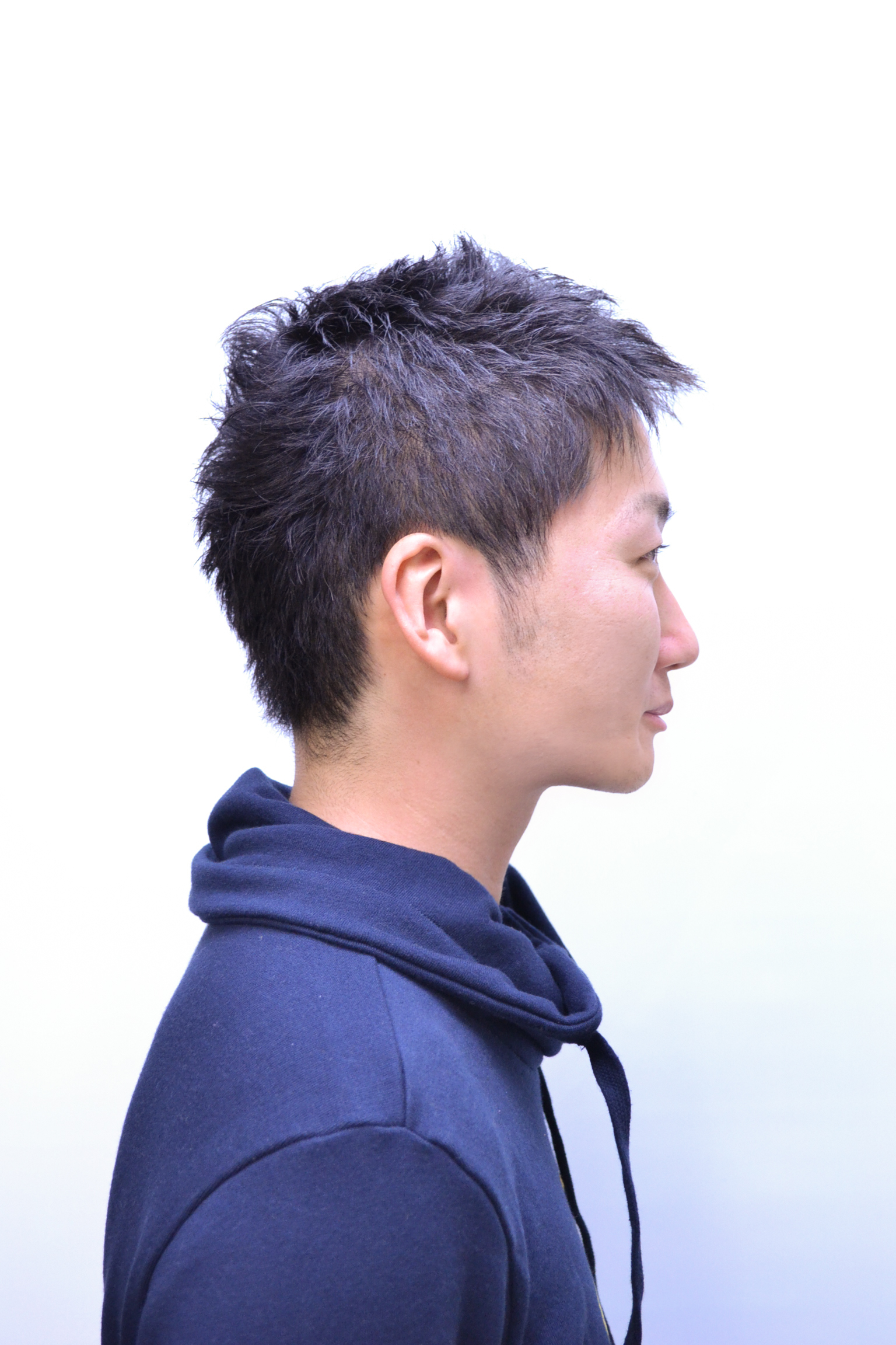 サイドは短く、トップはサイドに比べ少しだけ長さを残すことによりスタイリッシュなシルエットを演出します。トップとのバランスを変えたりして季節感を楽しめます。スーツやメガネと相性が良いヘアスタイルです。
